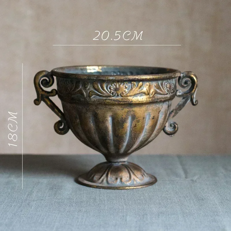 اواني تراثيه للزهور فاخر عتيق يجسد جمال التاريخ وروح الفخامة الأوروبية بتصميم مستوحى من الطراز الباروكي الكلاسيكي توفر هذه المزهريات المعدنية العتيقة لمسة من الأناقة والترف لأي مساحة داخلية تفاصيلها المنقوشة بدقة والمظهر المعتّق تجعل منها قطعة ديكور مميزة تعكس الذوق الرفيع.