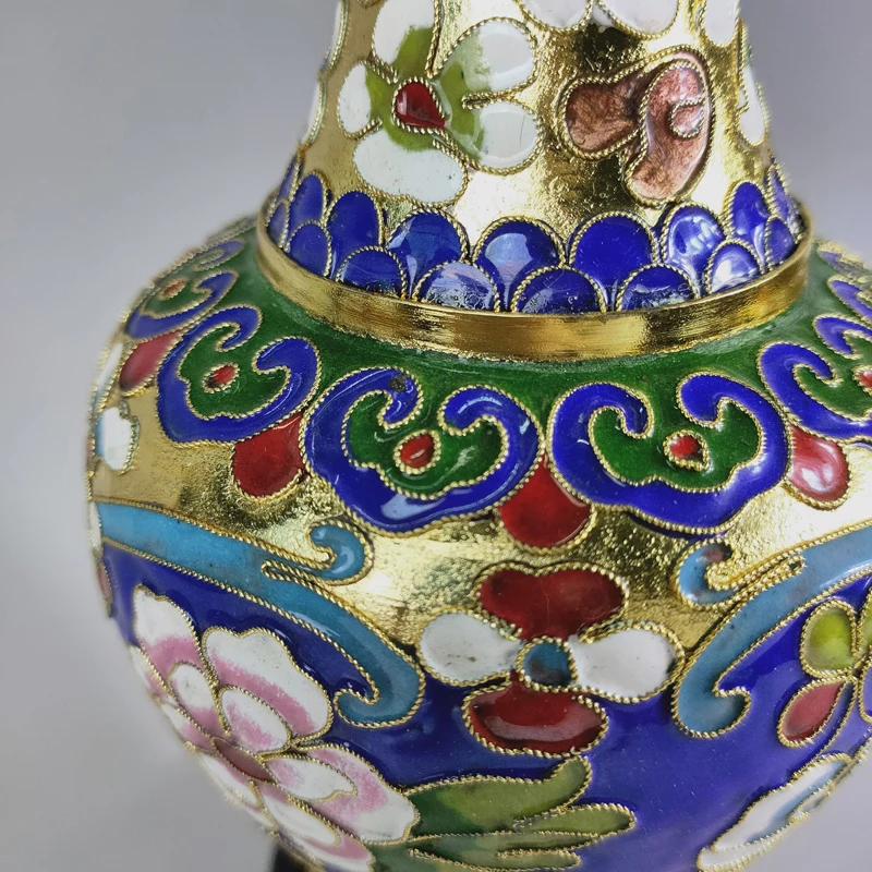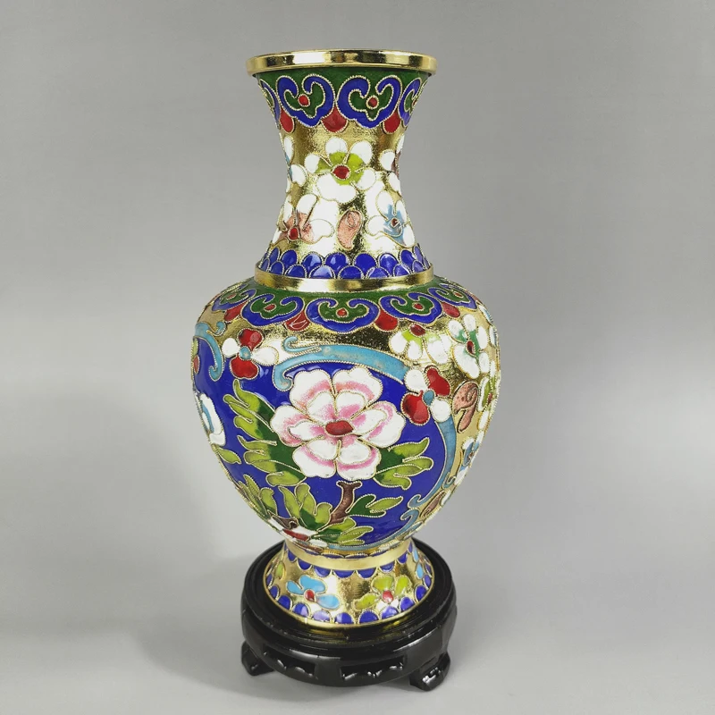 مجموعة الحرف اليدوية التقليدية الصينية الرائعة لتزيين المنزل مزهرية كنز زهرة مصوغة بطريقة نحاسية