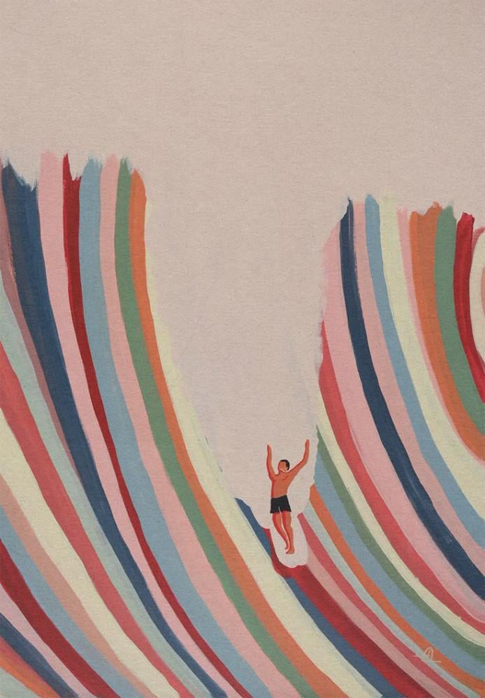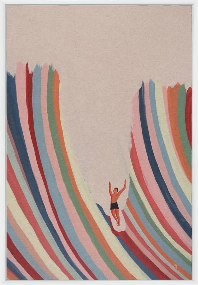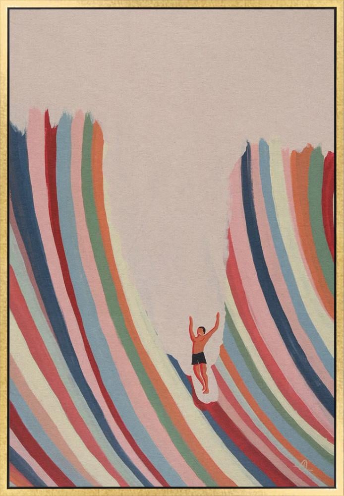 لوحة فنية لرجل يتزحلق على موجات ملونة بأسلوب تجريدي مبهج 80*120