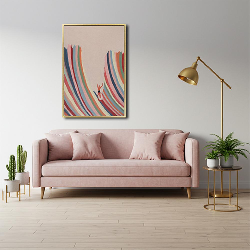 اطلب الآن لوحة فنية لرجل يتزحلق على موجات ملونة بأسلوب تجريدي مبهج 80*120 لرجل يتزحلق على موجات ملونة 80x120 من متجر جدران وأضف لمسة فنية مبهجة لمنزلك أو مكتبك
